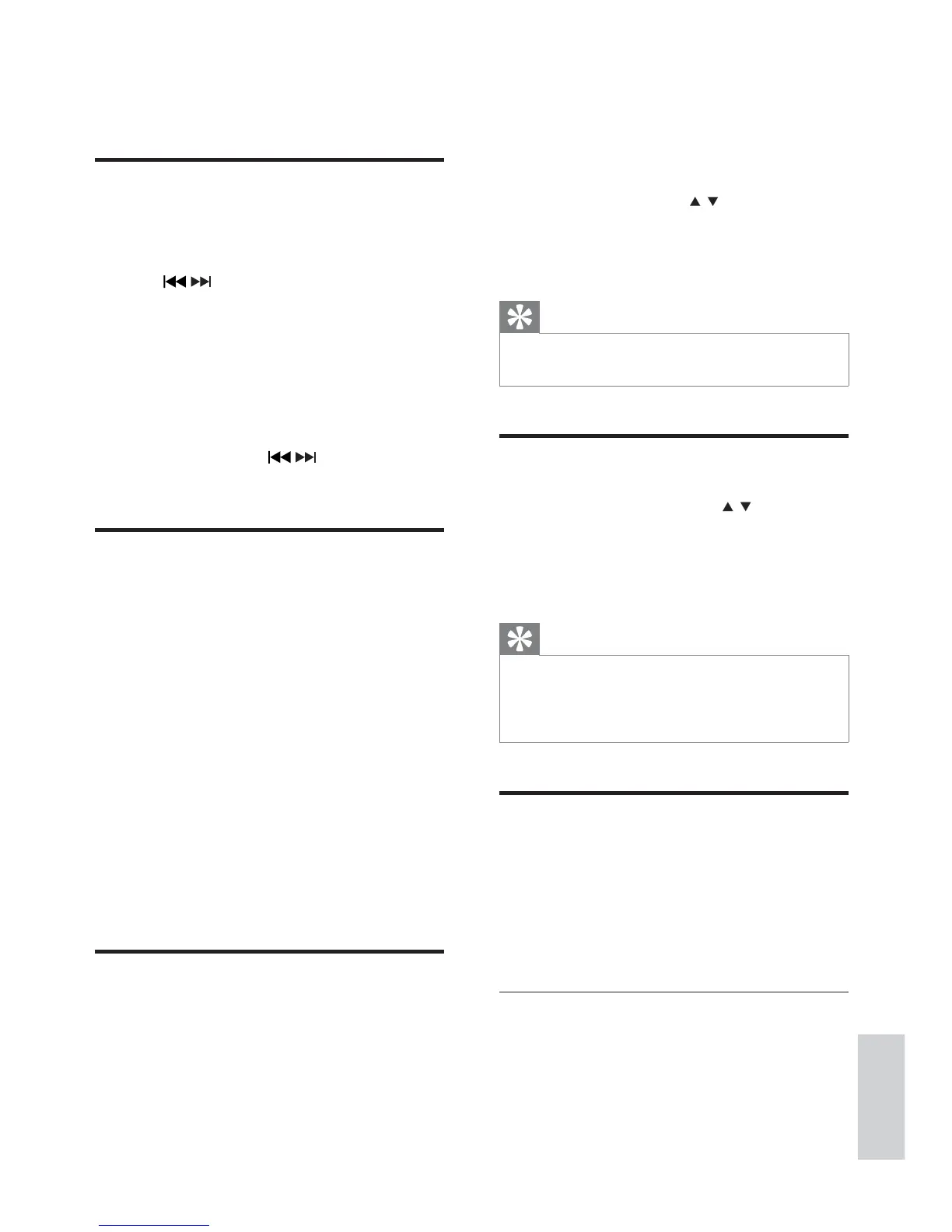 I tunerläge trycker du på / för att välja