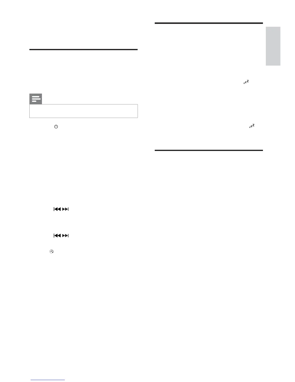 2 Press and hold SLEEP/TIMER for more