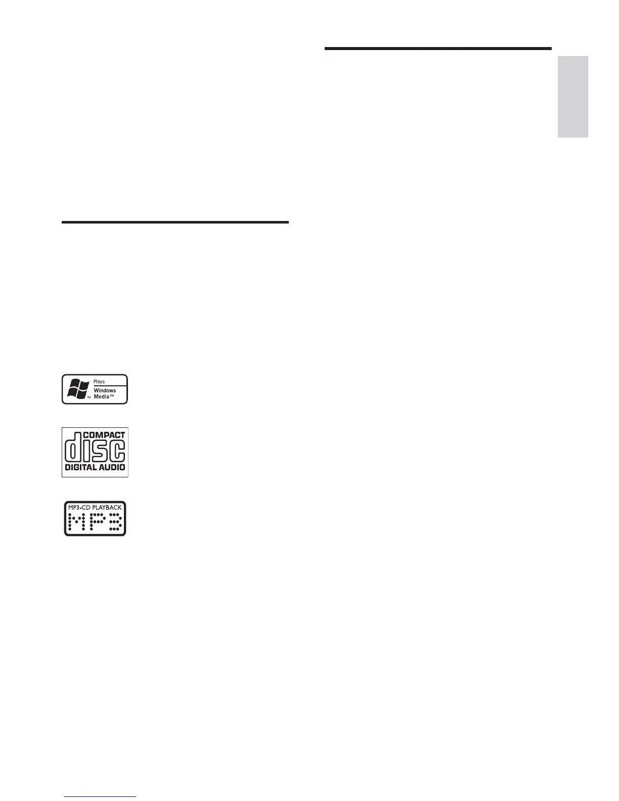 The unit supports the following media formats: