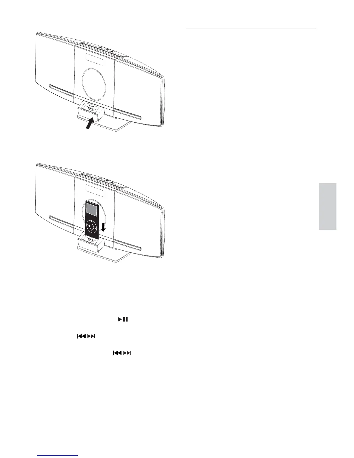 2 Coloque el reproductor iPod/iPhone en