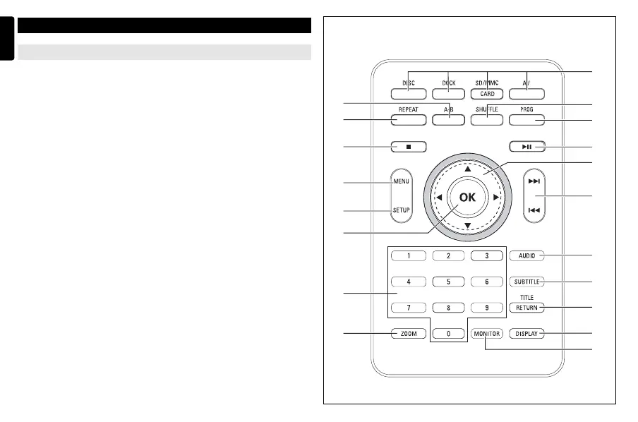 1 Source keys ........Select respective sources: DISC, iPod, SD/MMC or AV.