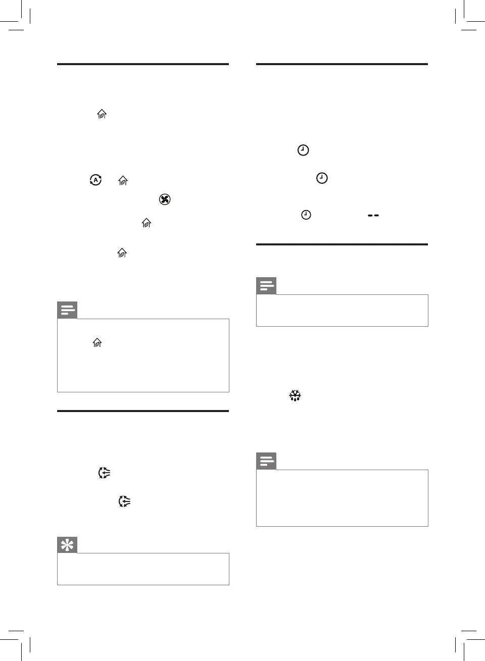 Philips DE5206/00 - 设置定时器; 除湿机除霜; 使用摆风功能; 使用纯净化模式