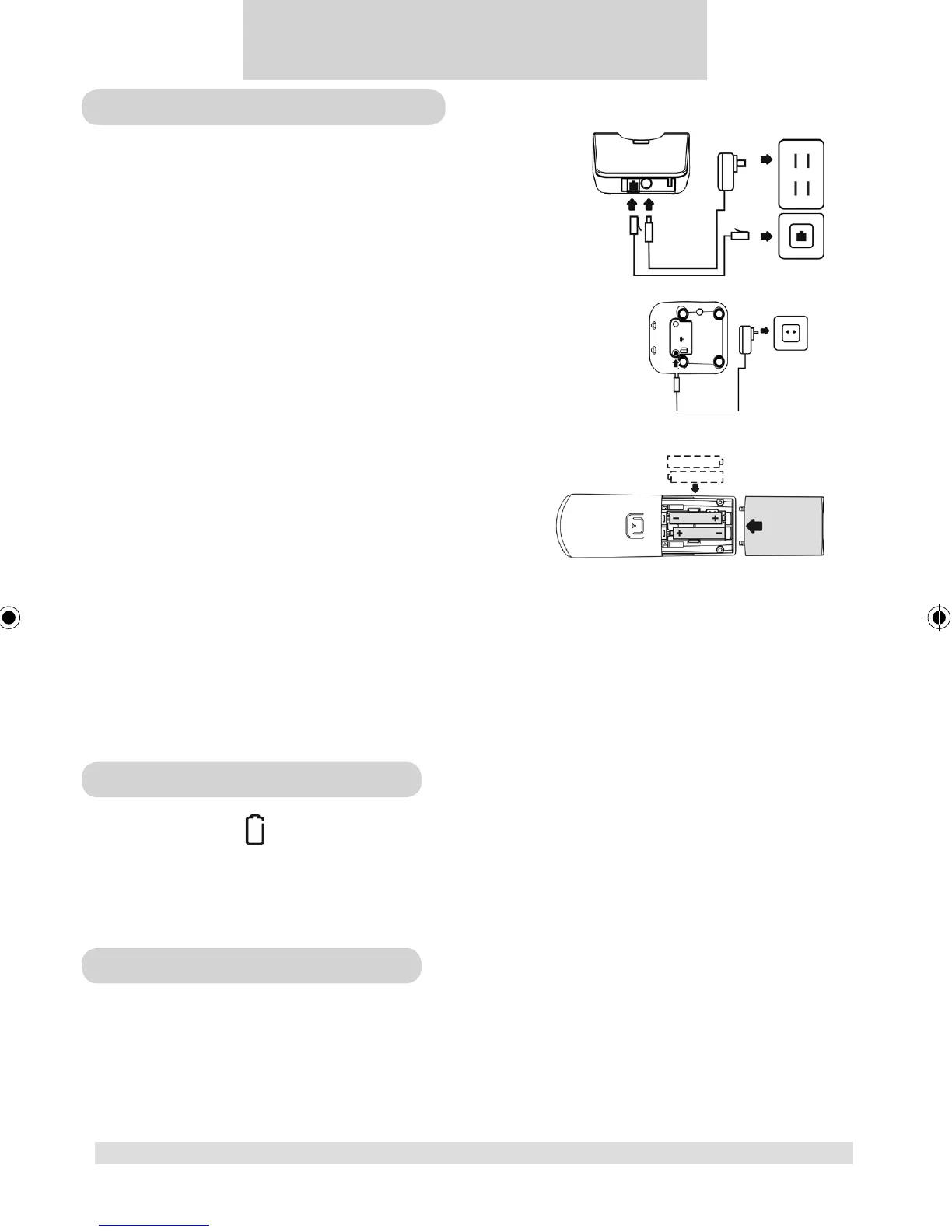 An empty battery icon indicates the batteries need recharging. To recharge, place the handset on the base unit. To recharge, place the handset on the base unit or