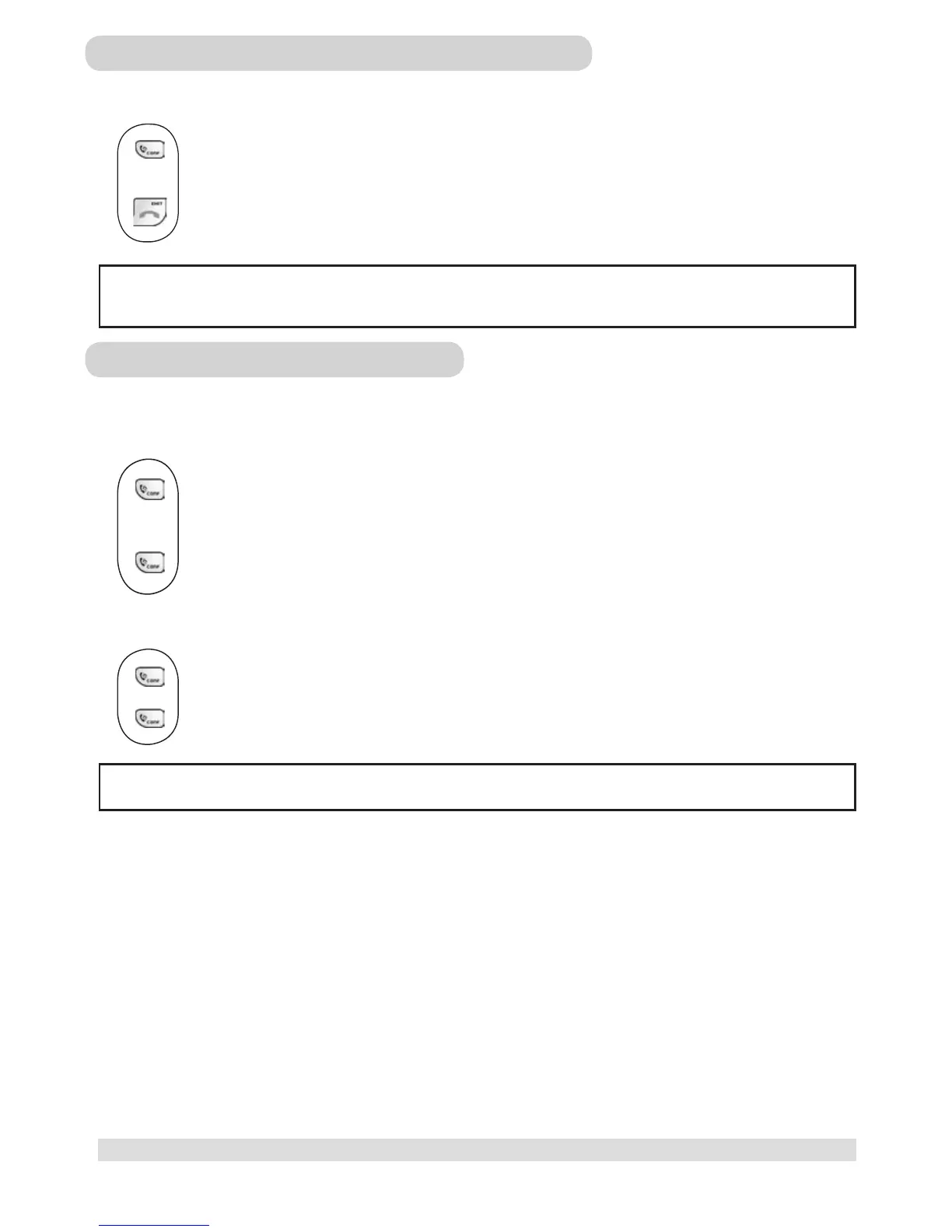 Note: Any handset that hangs up during a conference call will leave the other handset still connected with the