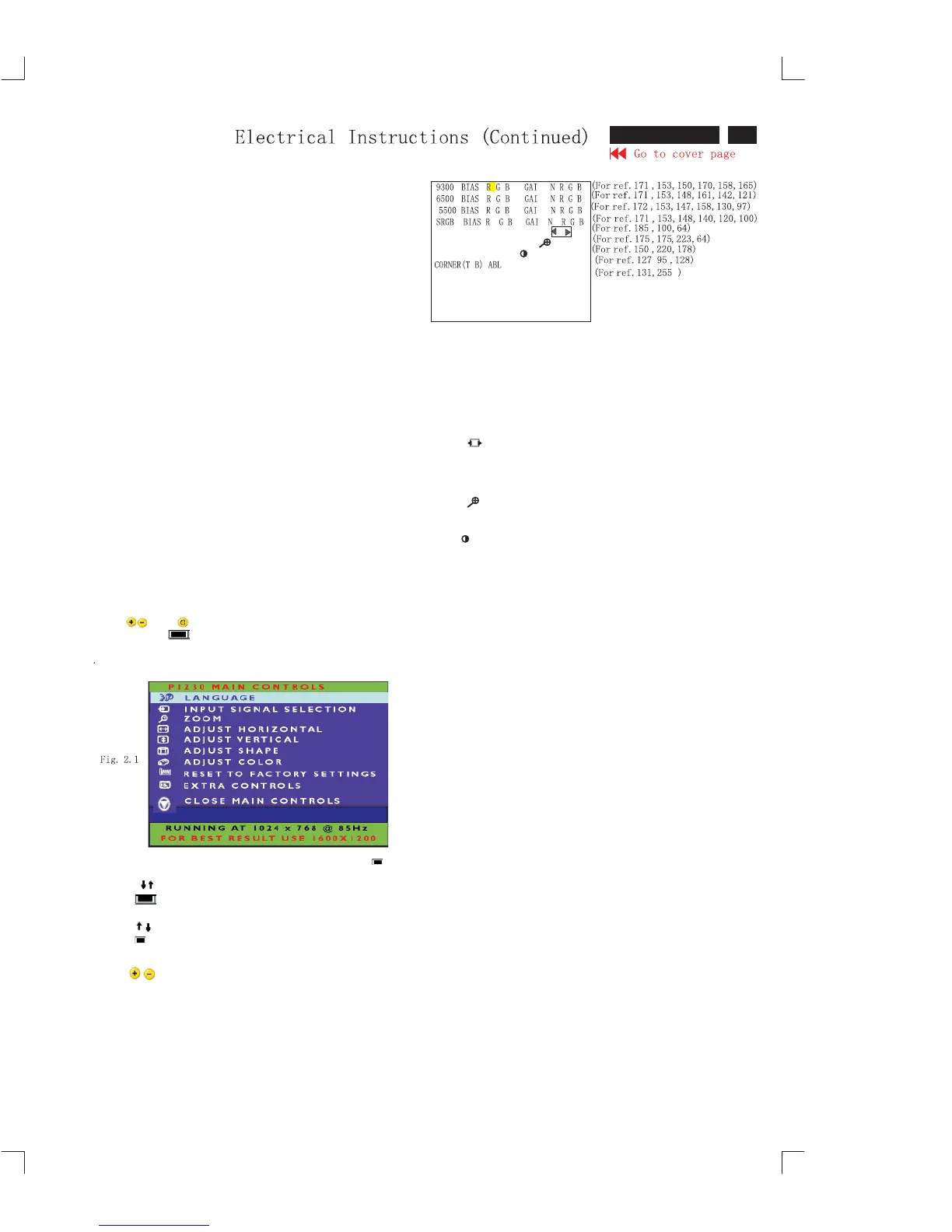7.2.5 Switch the input signal to full white pattern. Move the OSD