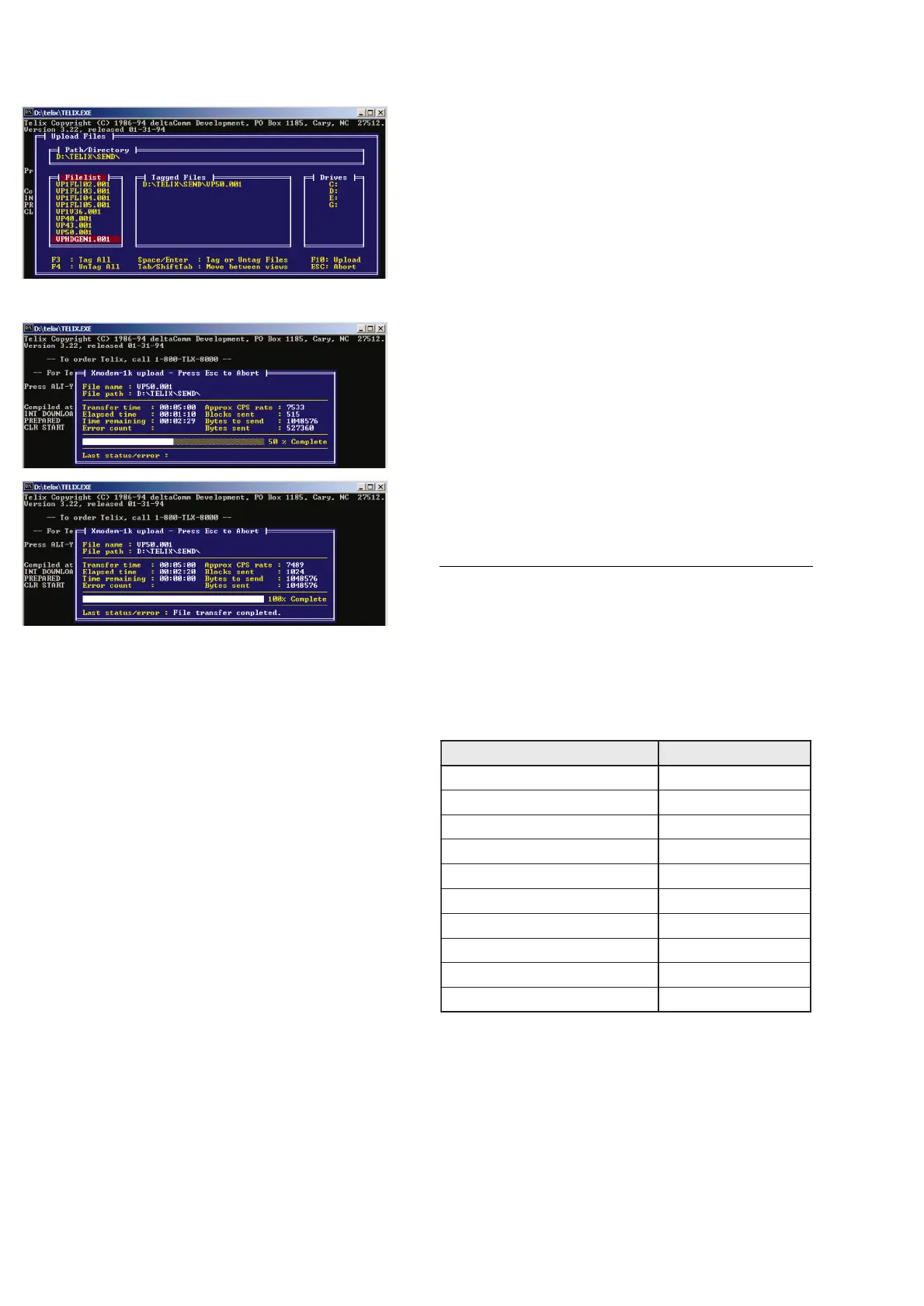 If the message “Telix Warning, upload was aborted”