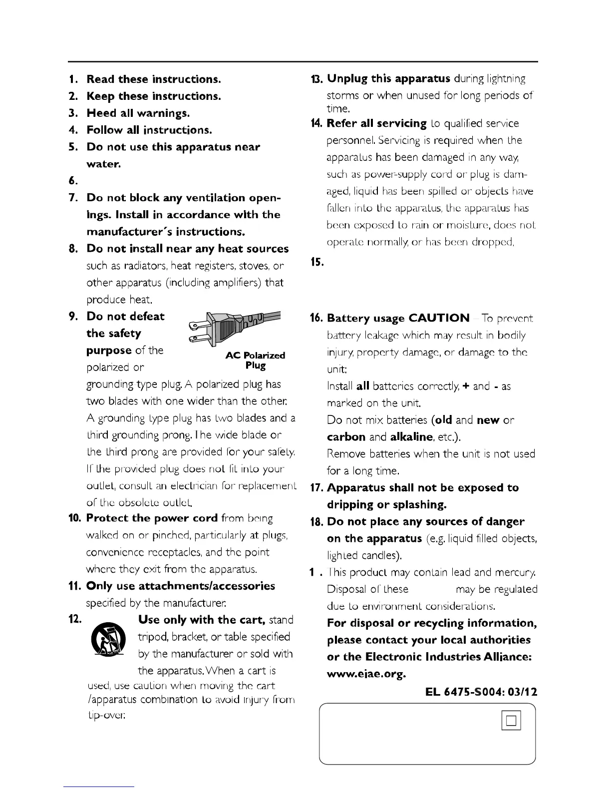 Philips Docking Entertainment System DC310 - Important Safety Instructions