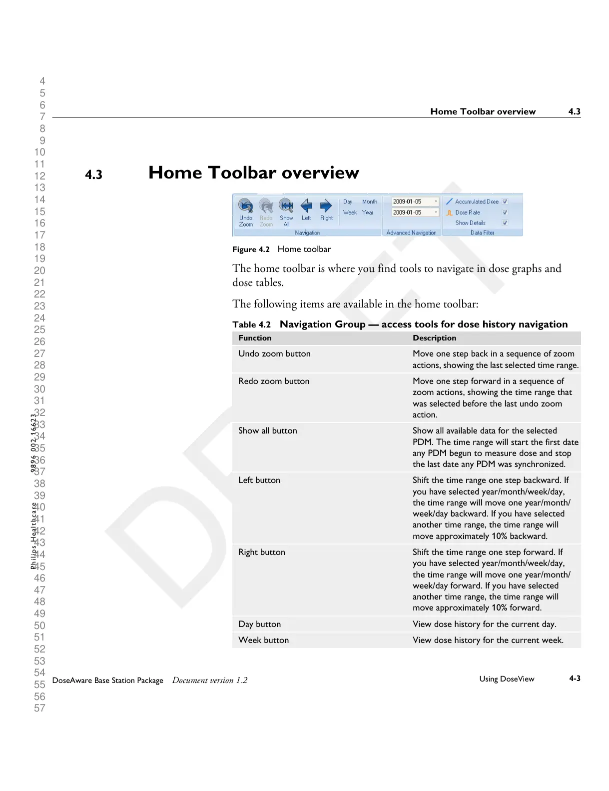 Table 4.2 Navigation Group — access tools for dose history navigation