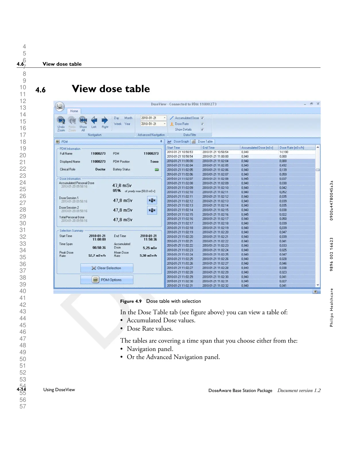 Figure 4.9 Dose table with selection