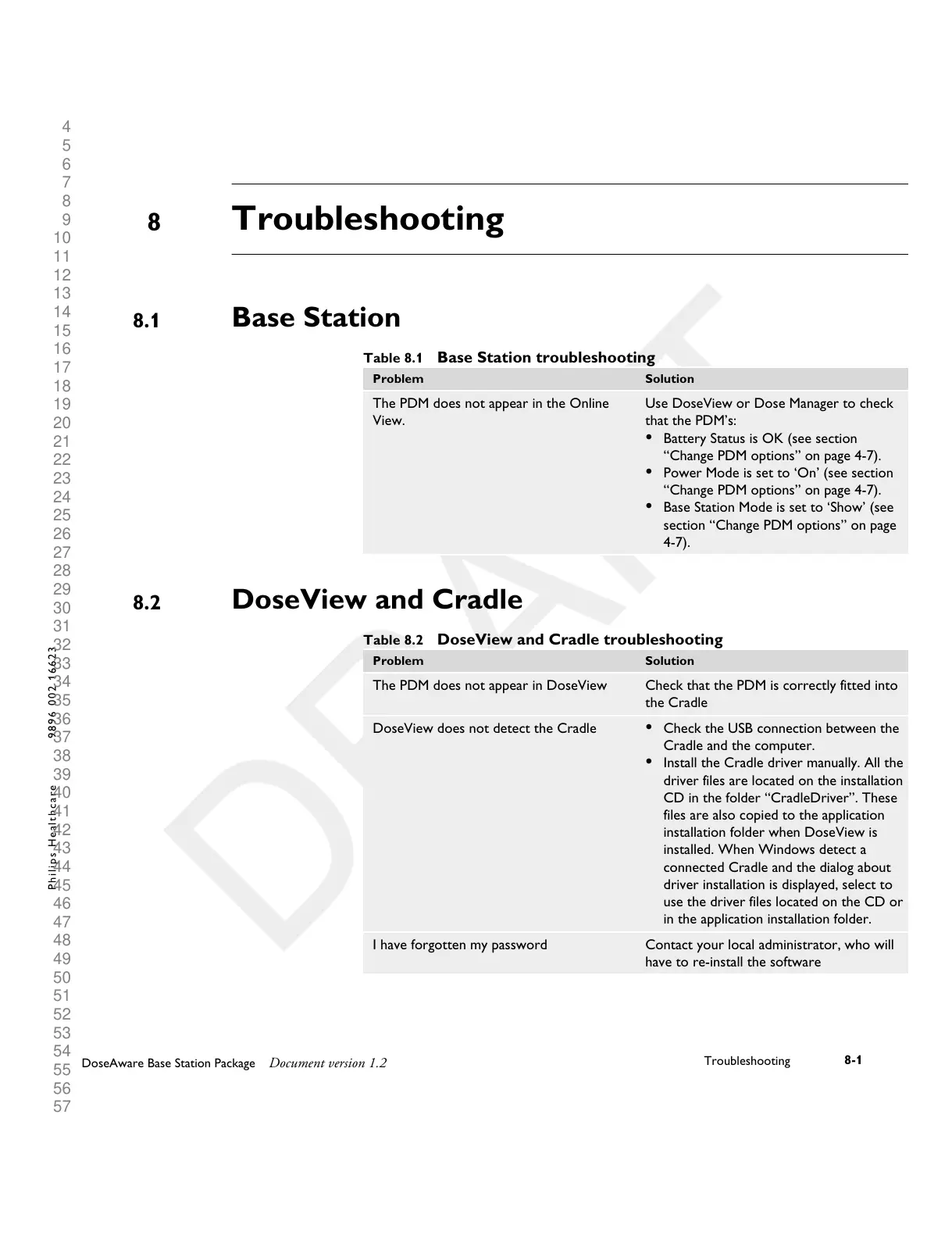 Table 8.2 DoseView and Cradle troubleshooting