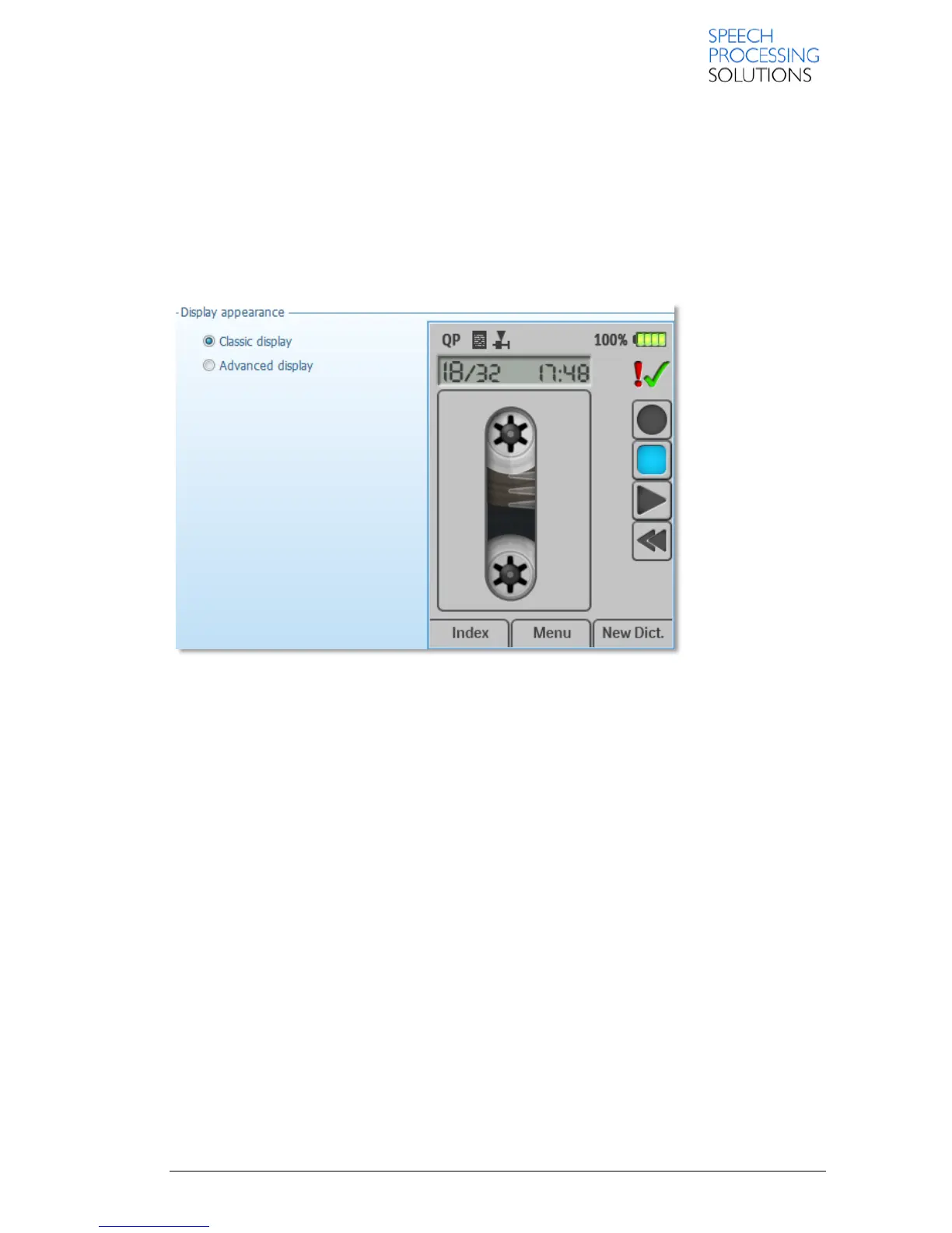 Classic Display - this option uses larger symbols. The image of the tape-based recorder is used here