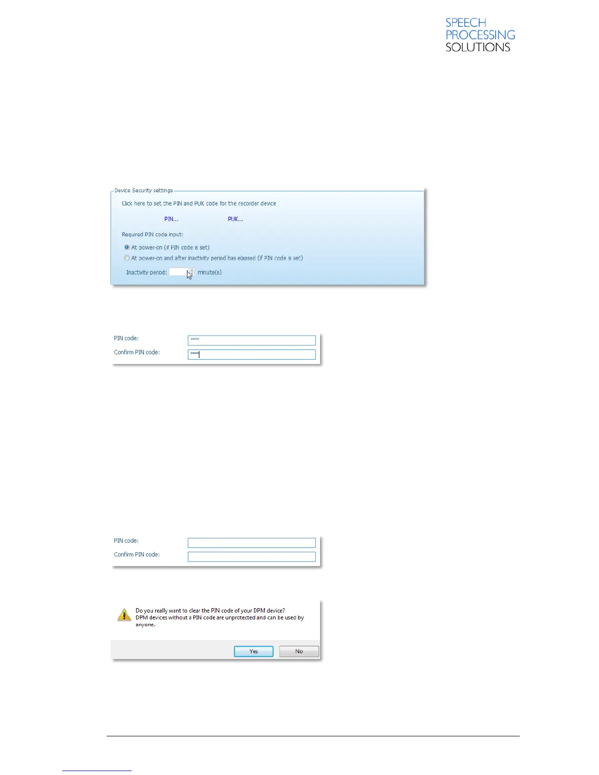 By setting the PIN and PUK codes, you can protect the recorder itself by prohibiting others from