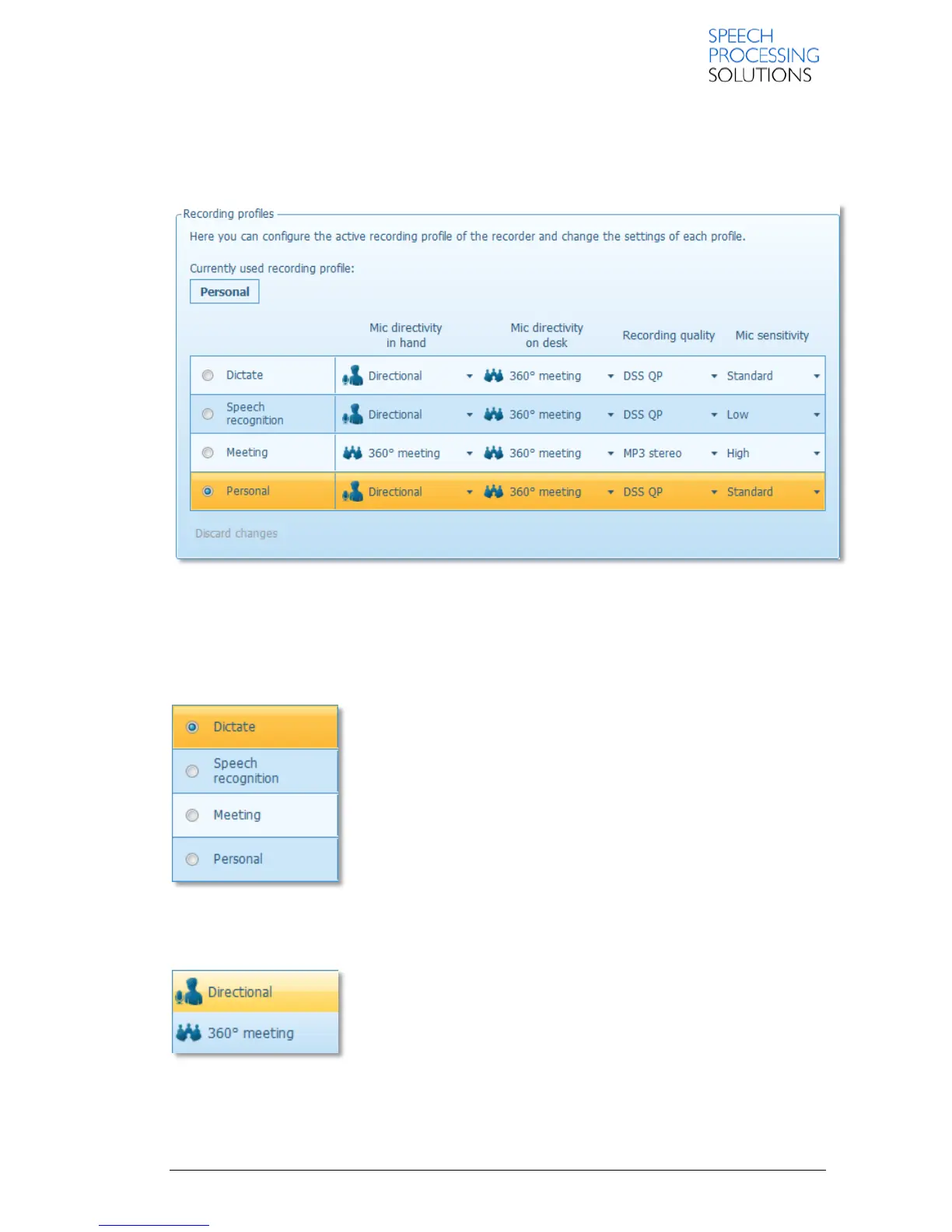 Here you can configure the active recording profile of the recorder and change the settings of each