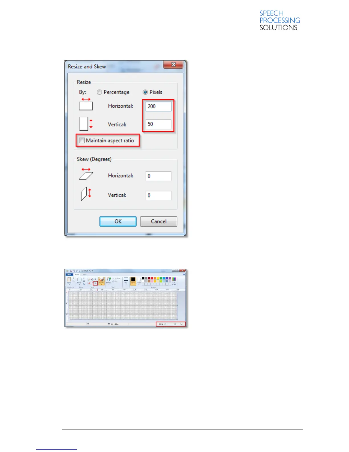 Horizontal: 200, Vertical: 50. Click on OK and close the Resize and skew window.