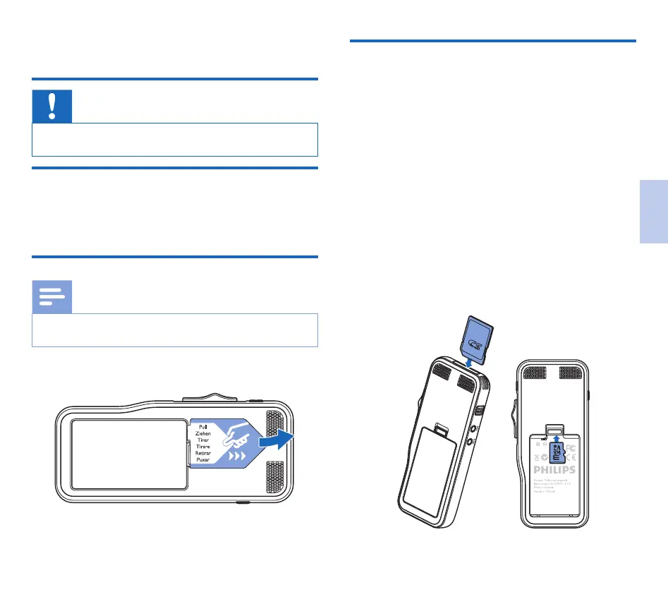 De batterij is van tevoren in de recorder geïnstalleerd. Trek vóór