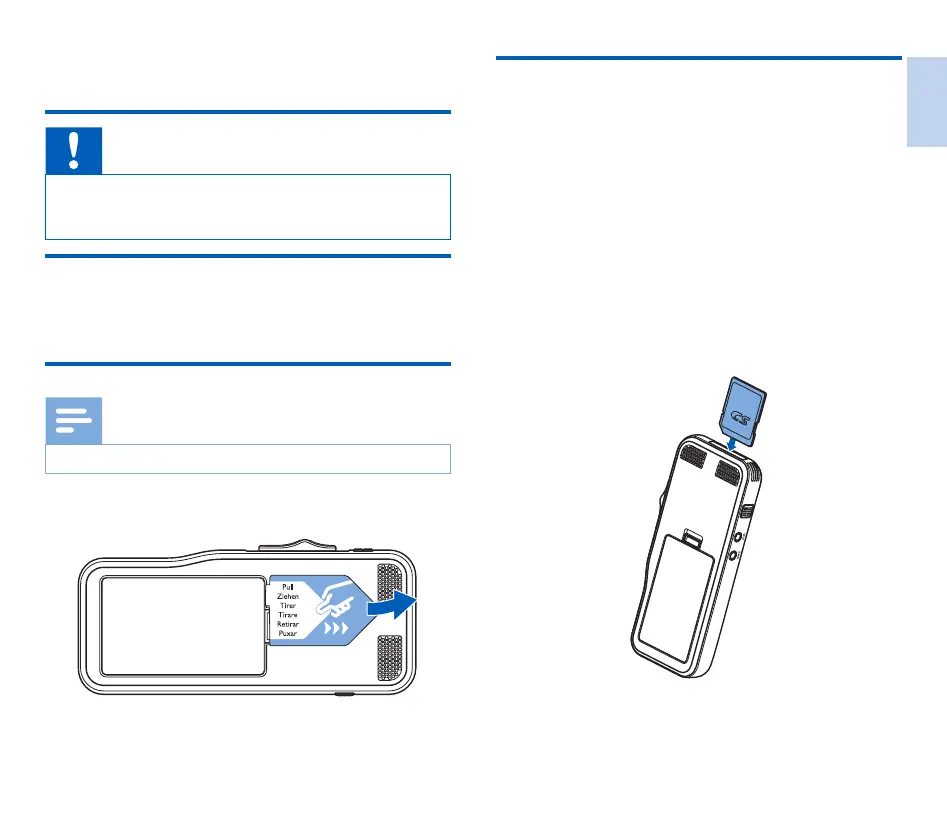 The battery is pre-installed in the recorder. Pull the battery tape
