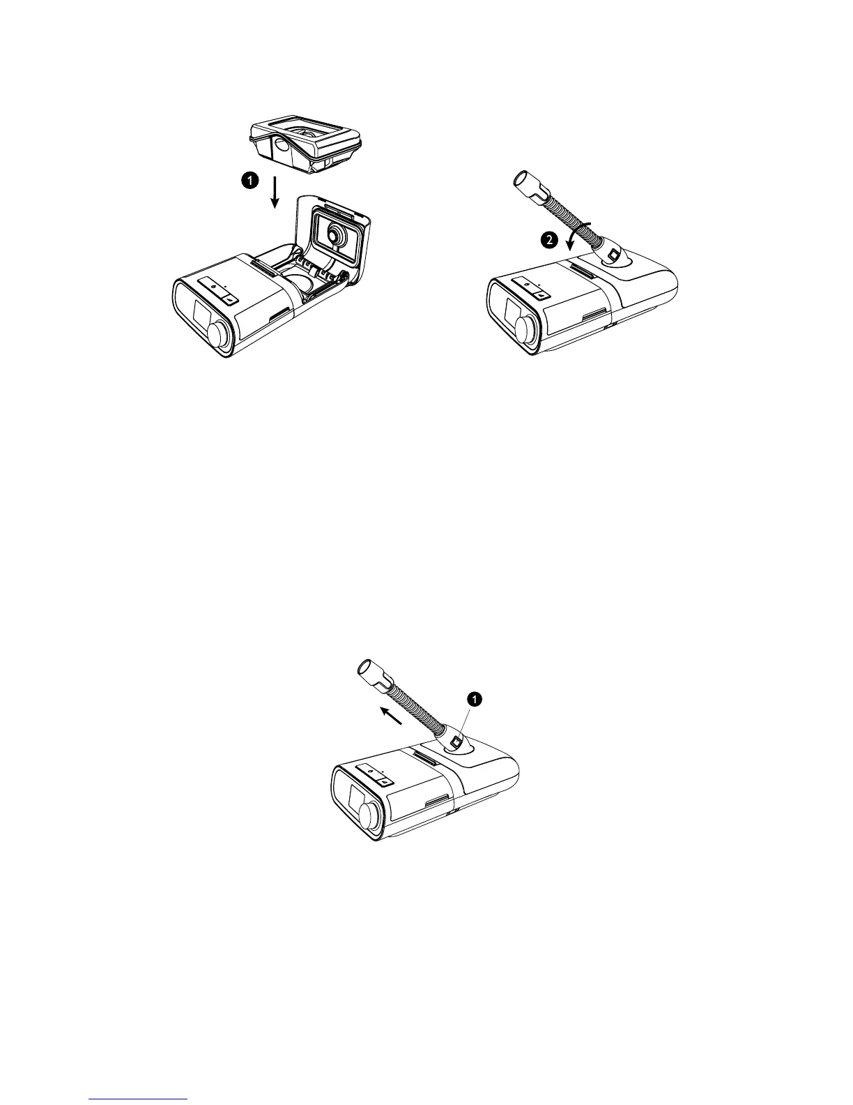 Warning: When installing the tank, do not allow any water to spill into the humidier or therapy device.