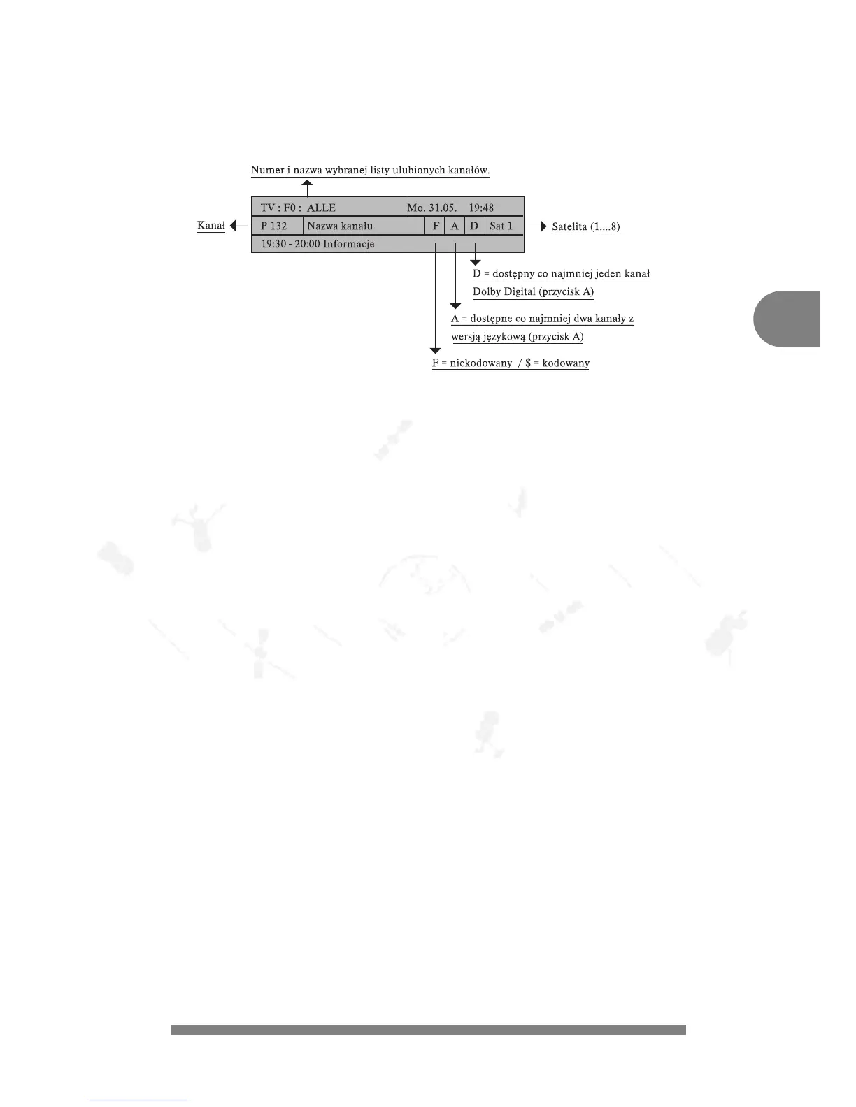 Wa¿ne: Po wybraniu kana³u wywietlane s¹ nastêpuj¹ce informacje: