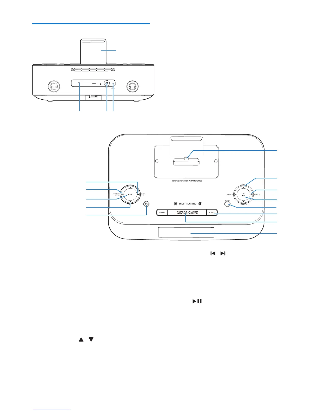 • In DOCK and BT mode, start or pause