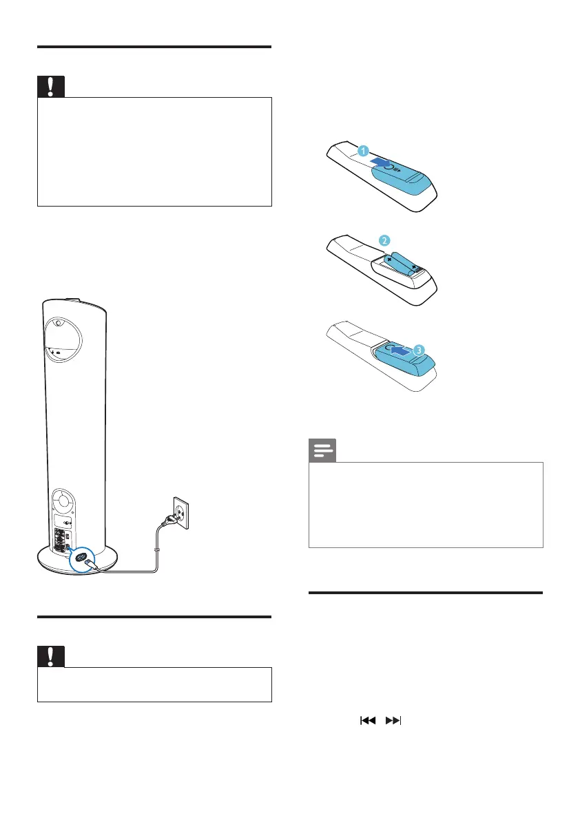 • Risk of electric shock! When you unplug the AC power