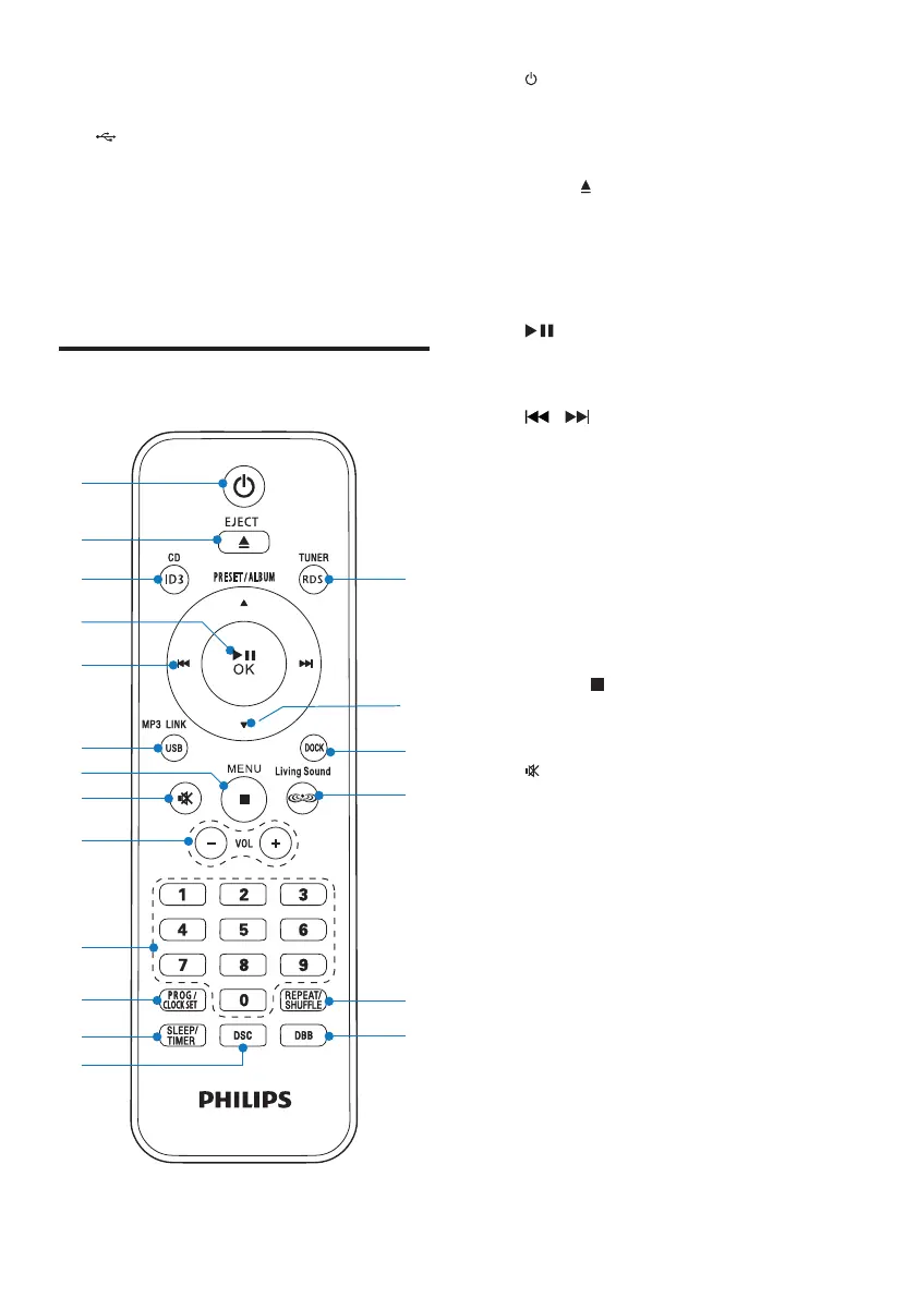 • In Disc/USB source, press and hold to