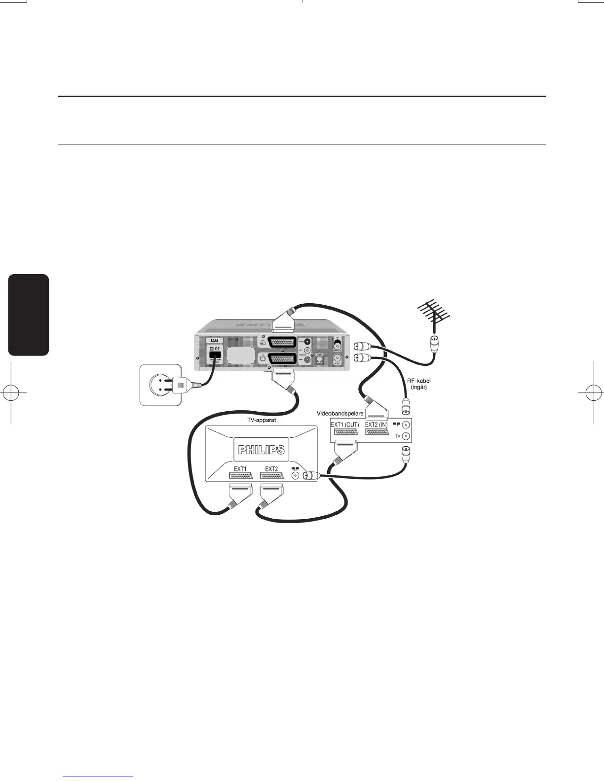 - Koppla SCART-uttaget för “VCR” på din digitala mottagare till SCART-uttaget “EXT1” på din