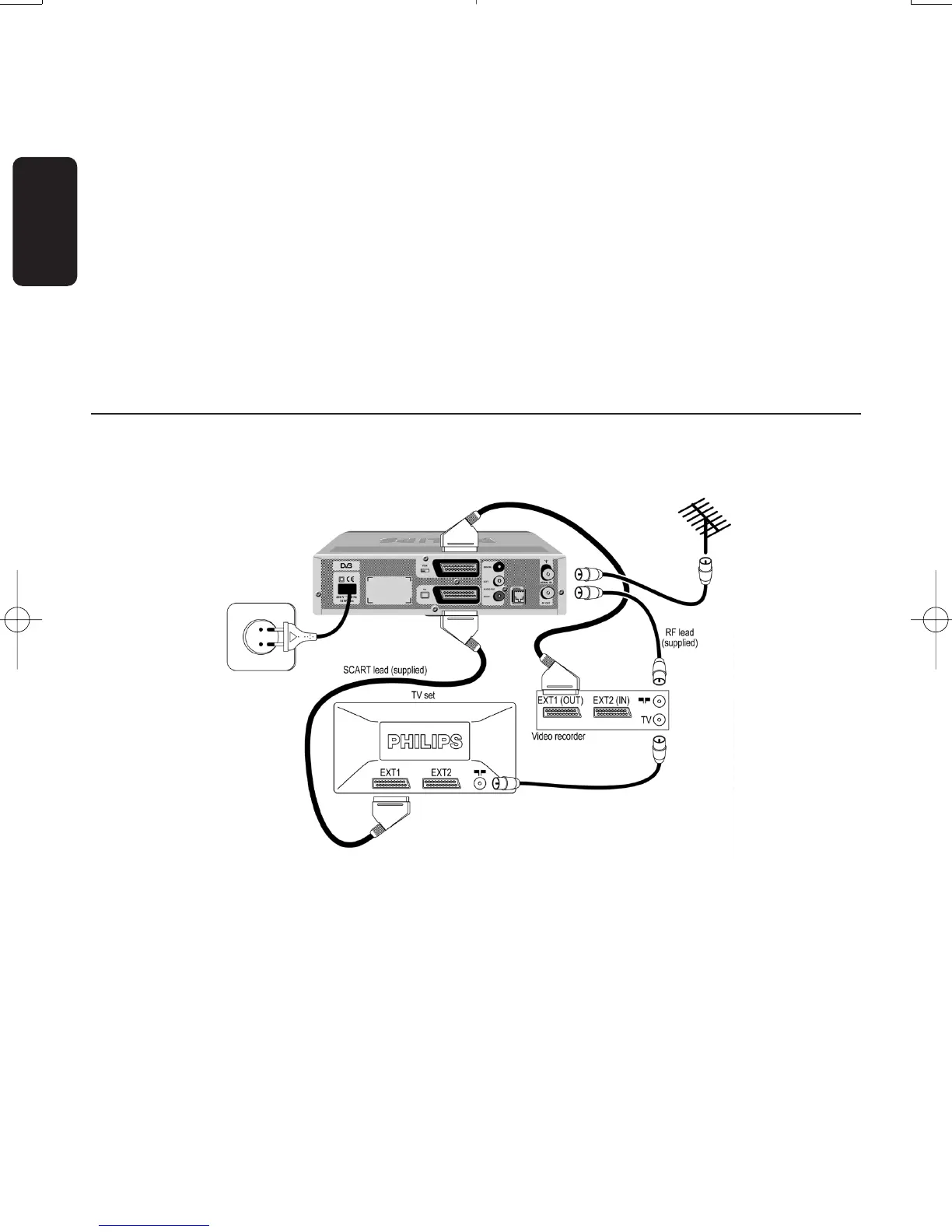 - Connect the “TV” SCART socket of your digital receiver to the “EXT1” SCART socket of your TV