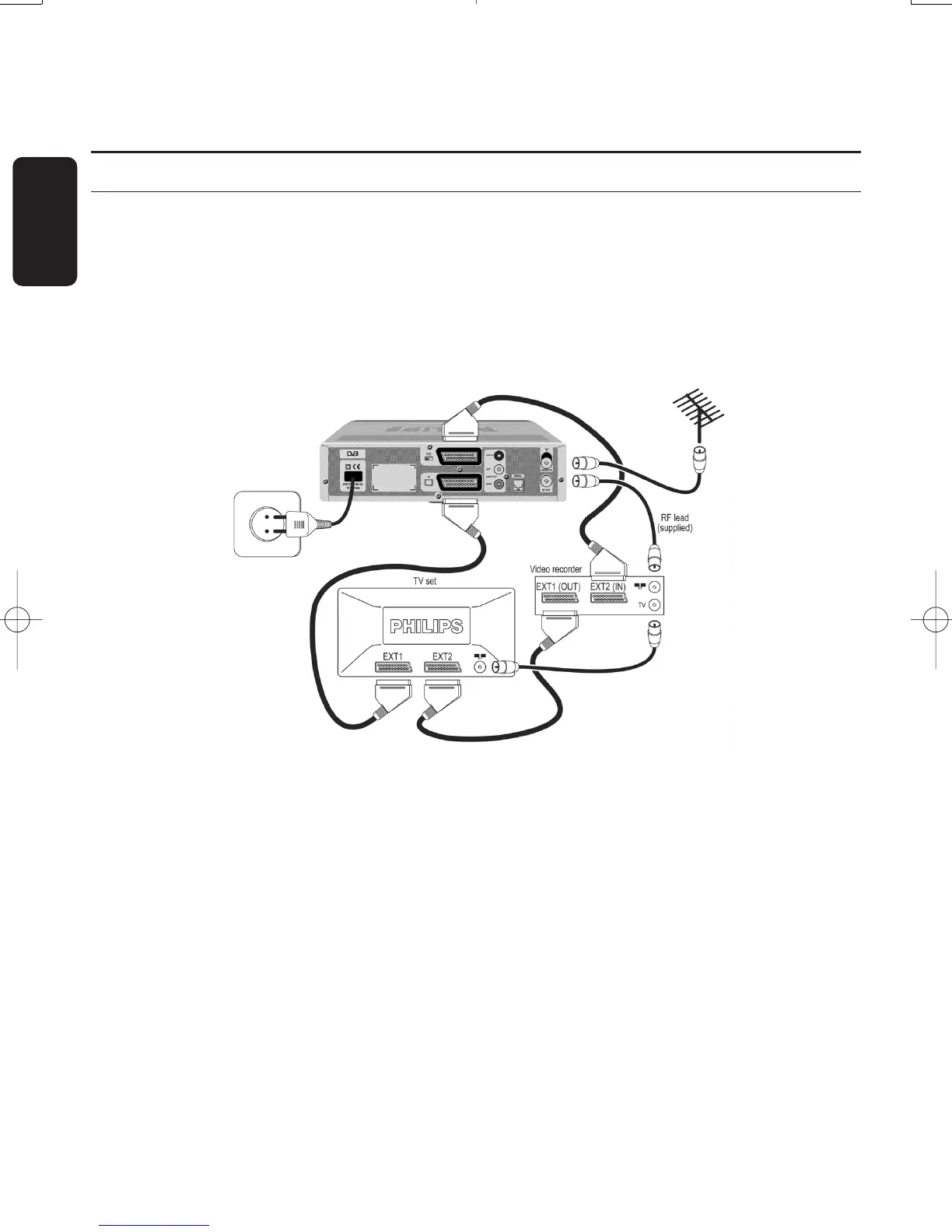 - Connect the "EXT1" SCART socket of your VCR (called "OUT") to the "EXT2" SCART socket of