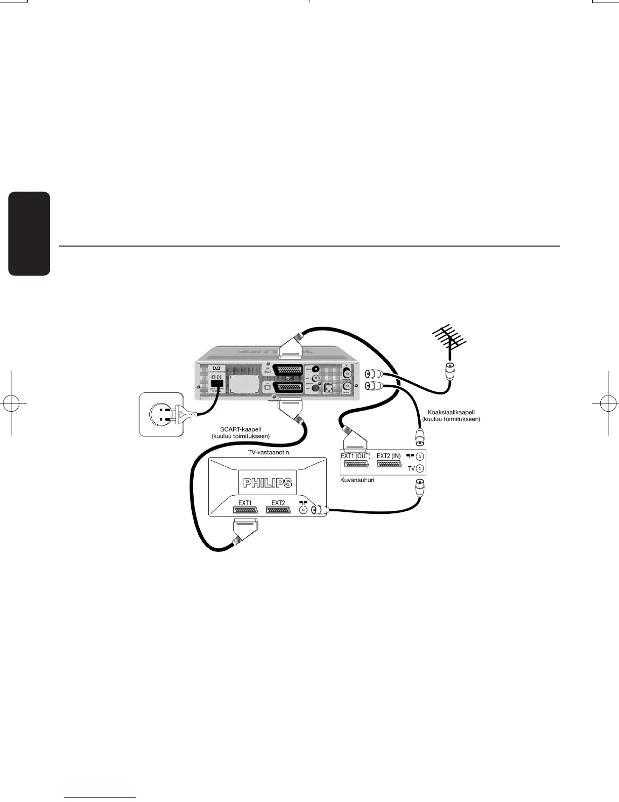 - Kytke digivastaanottimen SCART-liitäntä "TV" TV-vastaanottimen SCART-liitäntään "EXIT1" mukana