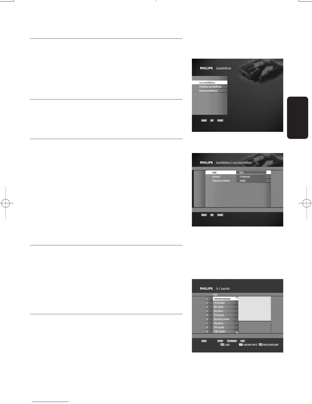 Tässä ruudussa tehdään suosikkilistan muutokset.