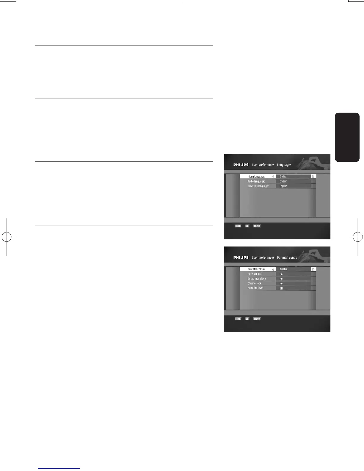Tällä valikolla valitaan valikkotekstien kieli,tekstityskieli ja