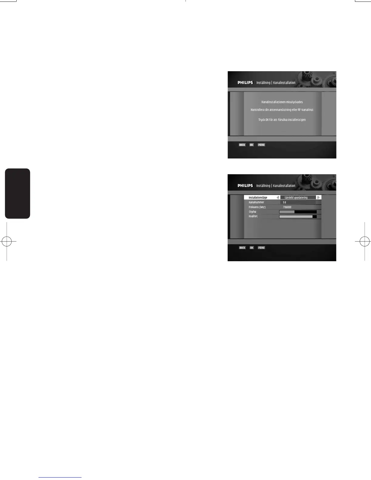 Tryck på OK för att starta en ny sökning om signalen inte är