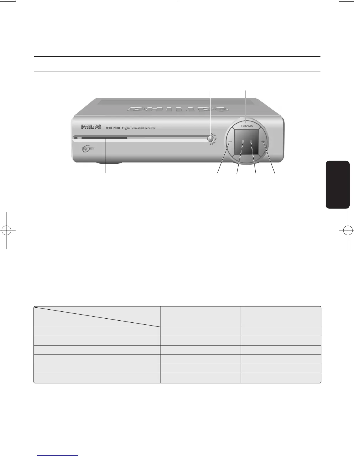 5 Röd kontrollampa: . . . . . . . . . . . . . . Visar mottagarens status (se tabelstatustabellen nedan).