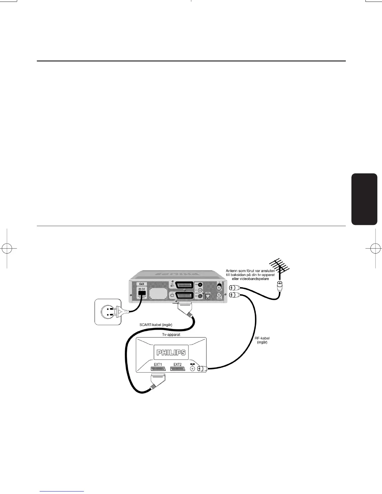 - Koppla TV SCART-uttaget på din digitala mottagare till det RGB-kapabla SCART-uttaget “EXT1” på