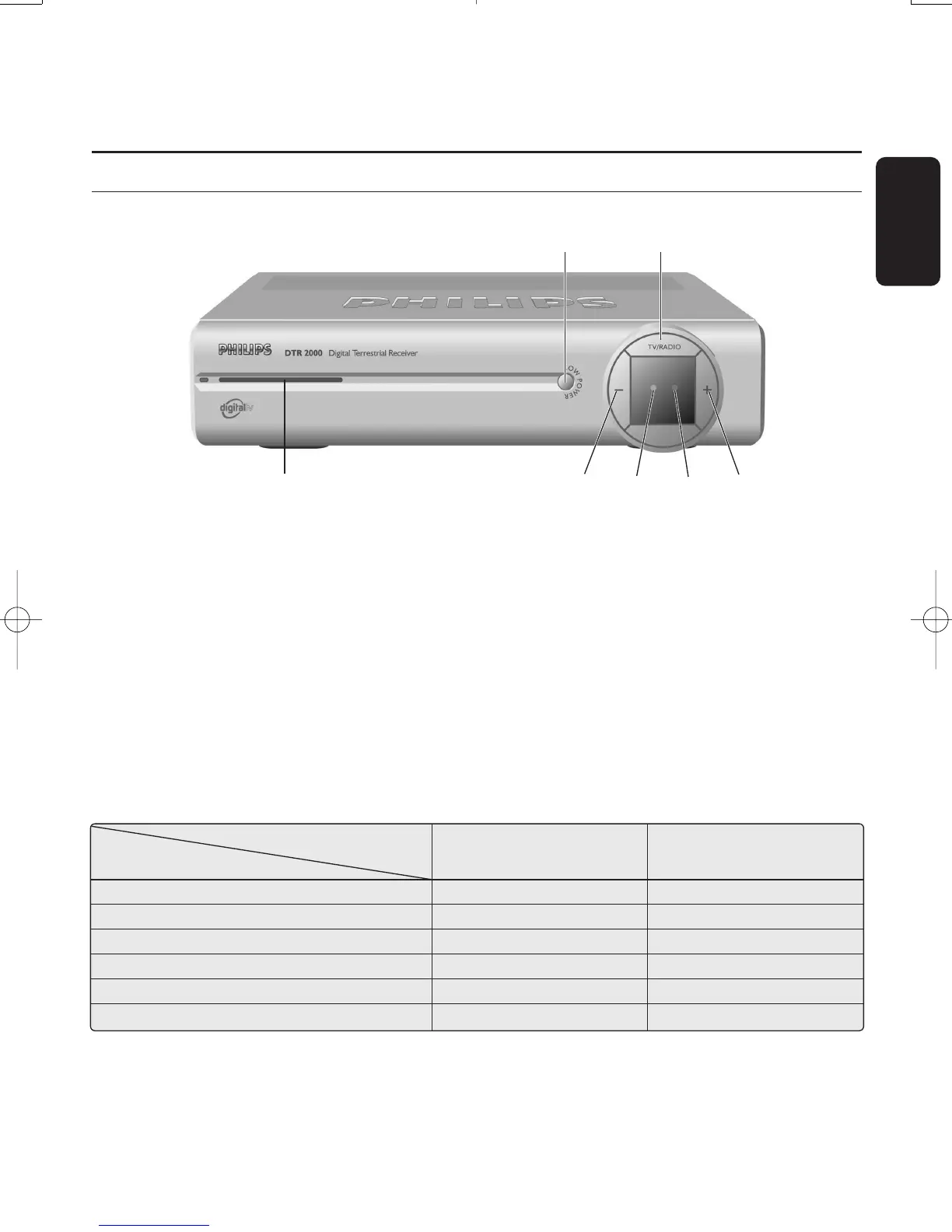 2 TV/RADIO button . . . . . . . . . . . . . . . Toggle between TV and Radio mode.