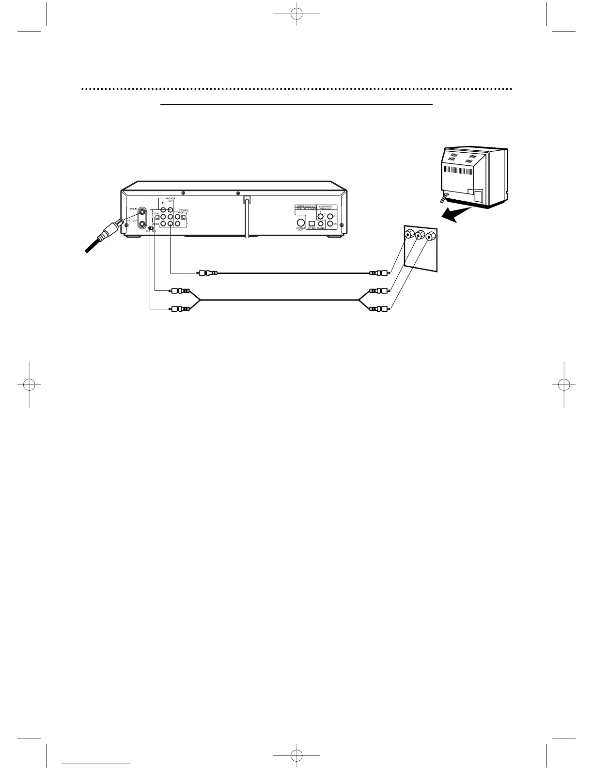 jacks on the DVD/VCR and to the red and white AUDIO IN jacks on the TV, matching the cable