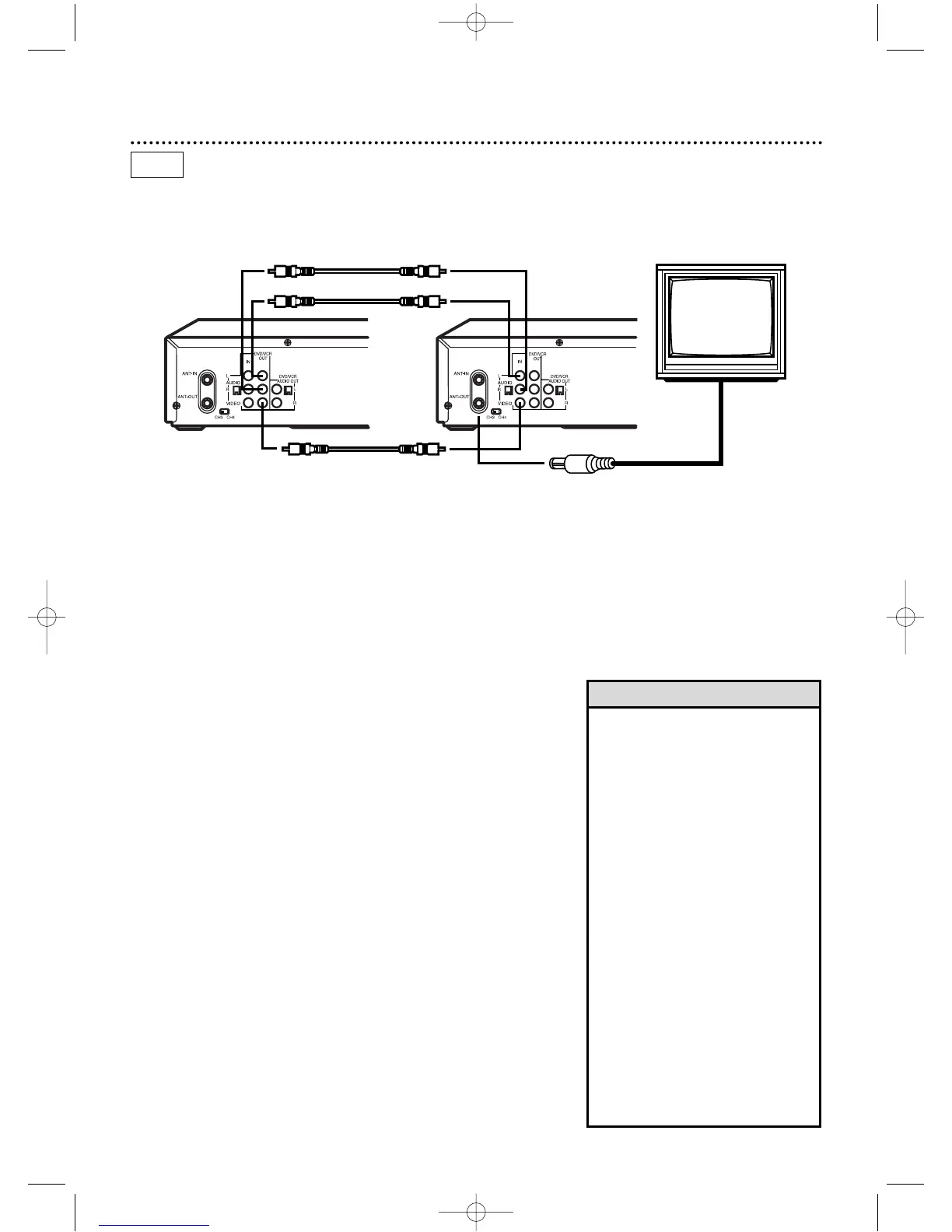 The instructions on this page show you how to copy tapes.The illustration uses two DVD/VCRs.Different