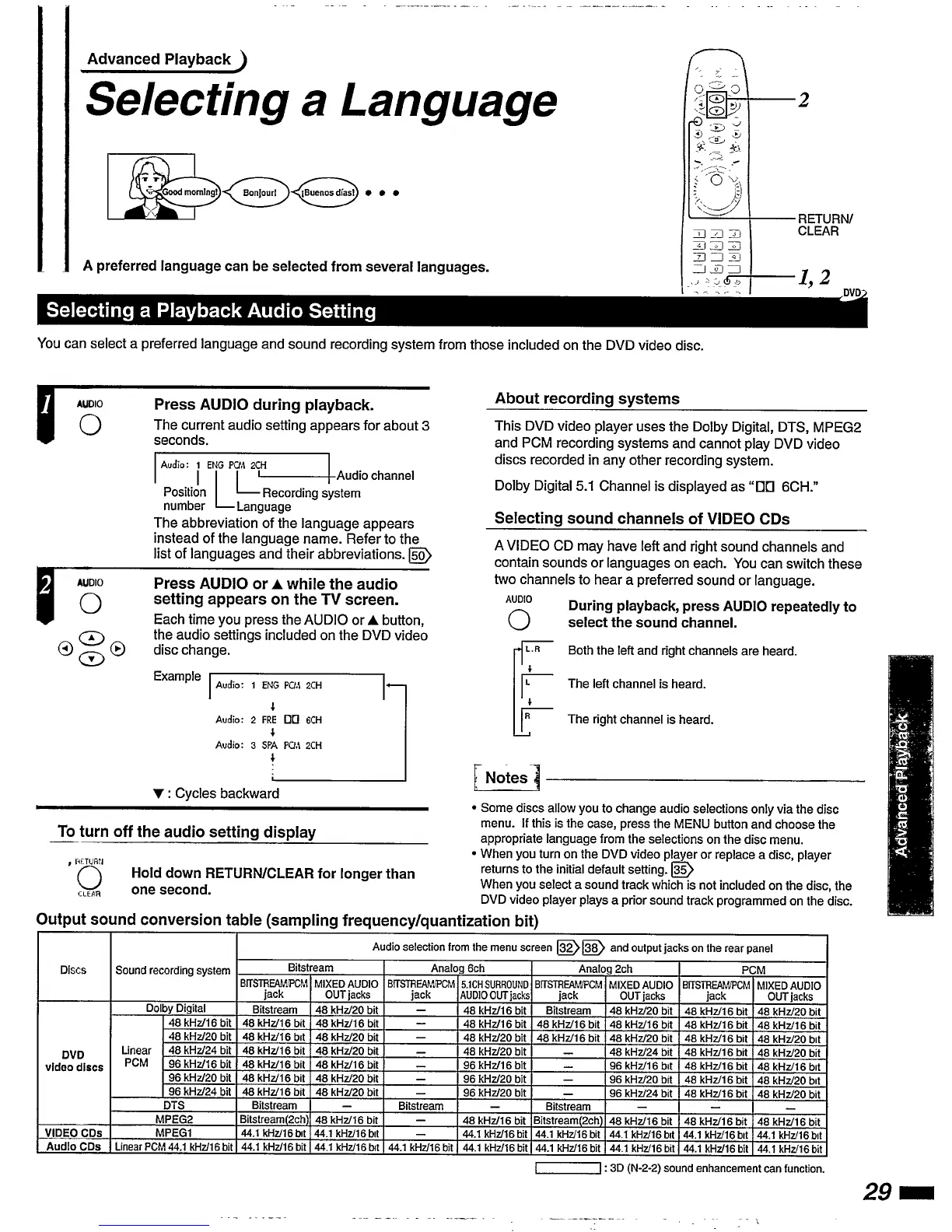 Philips DVD Player - Selecting Audio Channels for VIDEO CDs
