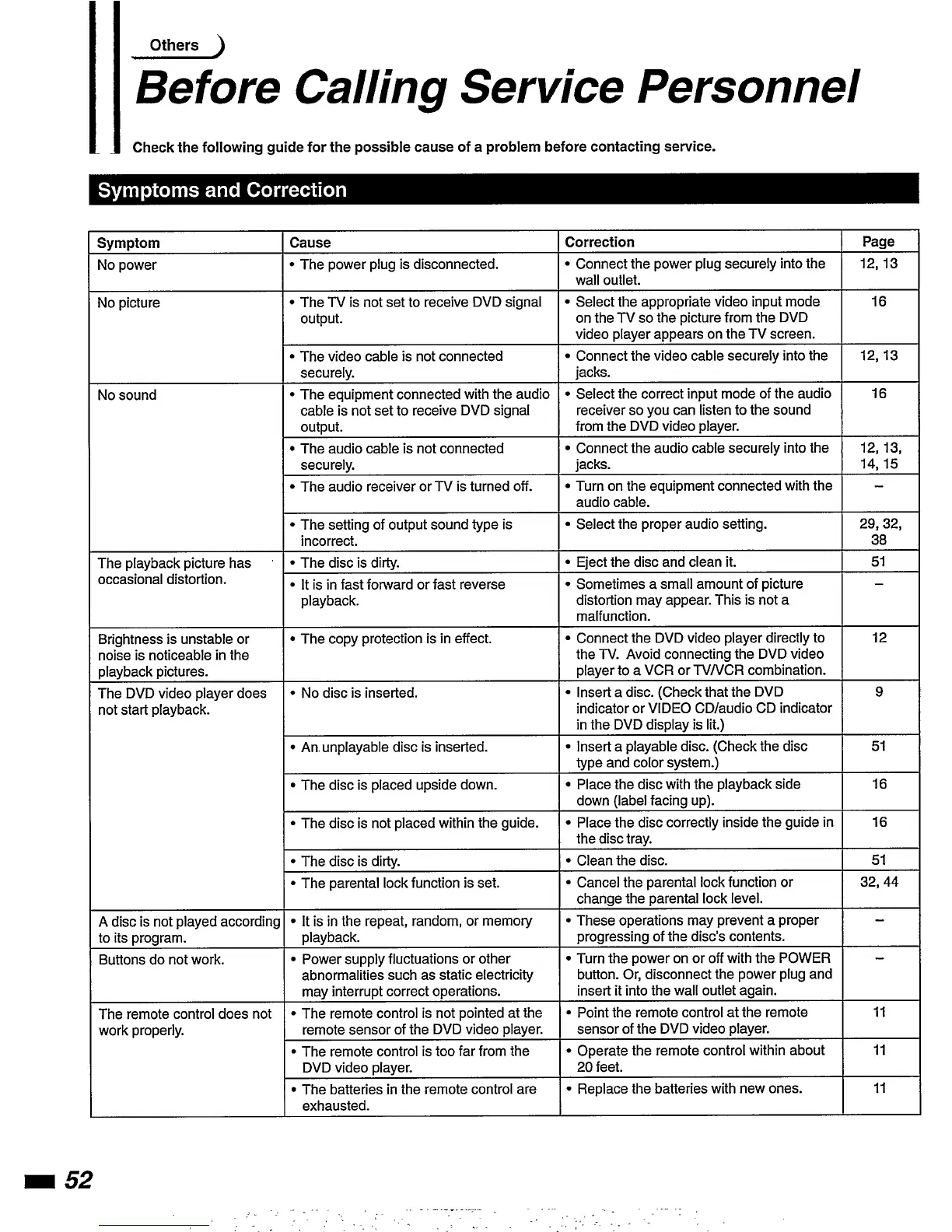 Philips DVD Player - Before Calling Service Personnel; Troubleshooting Symptoms and Corrections