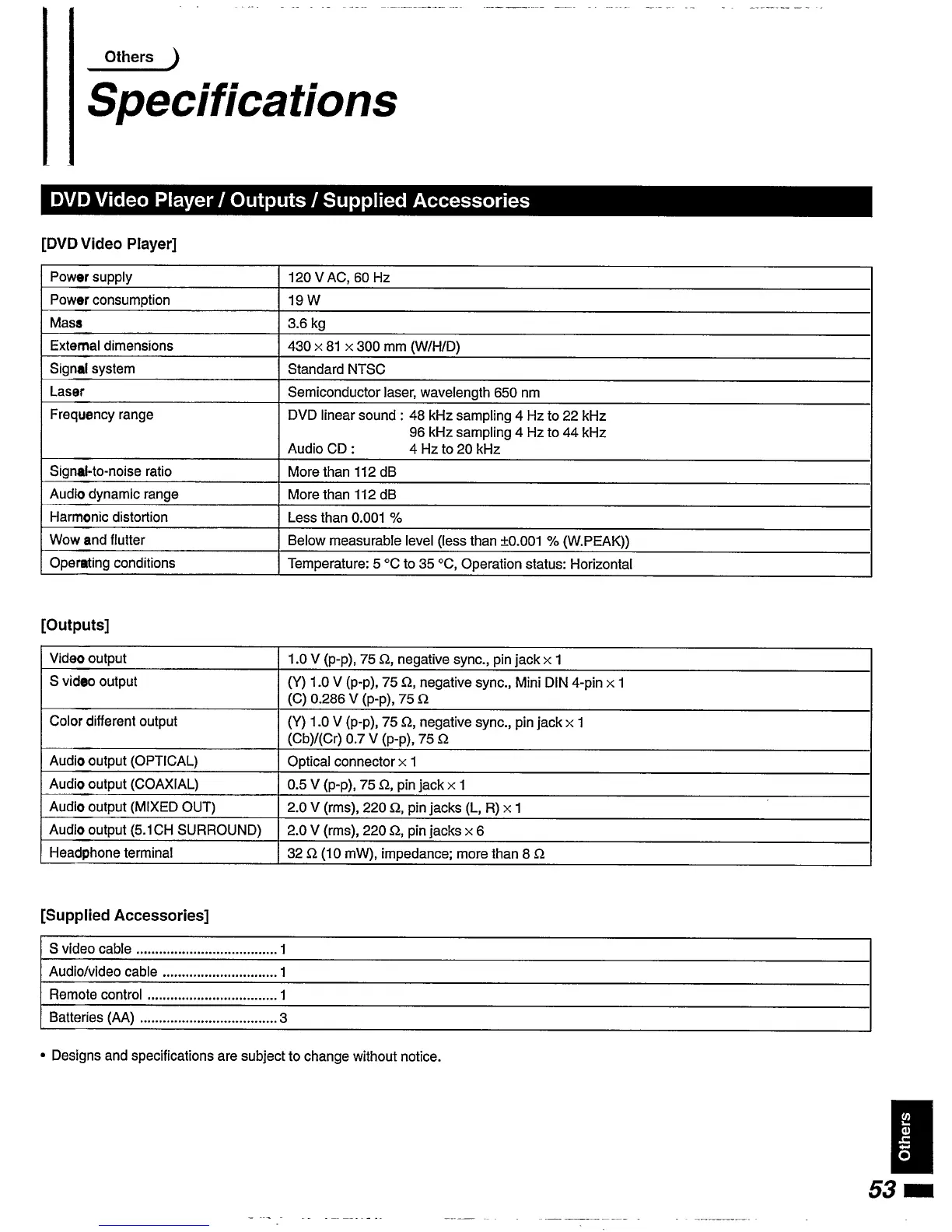 Philips DVD Player - Specifications; Technical Specifications and Accessories