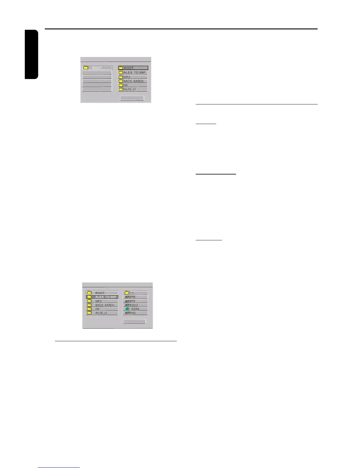 1 After loading a JPEG format/MP3 files disc, root