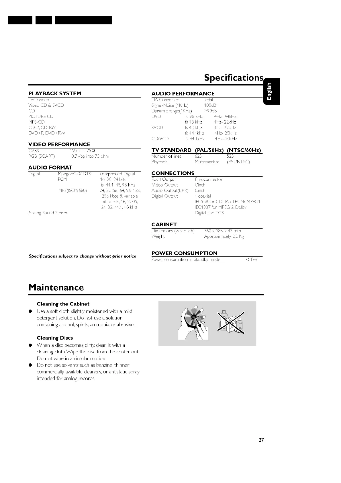 Philips DVD625 - General Information; Laser Safety Information; Laser Specifications