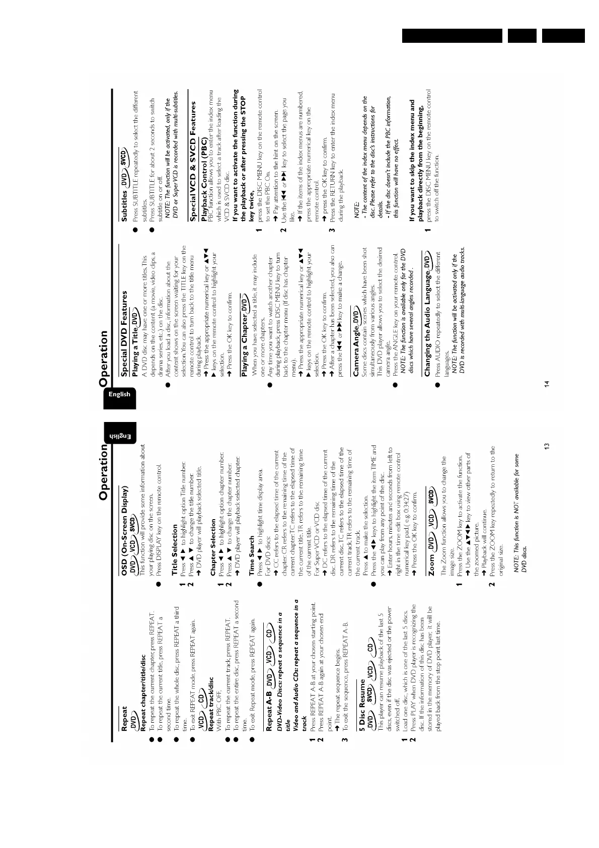 Philips DVD625 - Remote Control Battery Installation; Starting Operation; Smart Power On;Off Feature