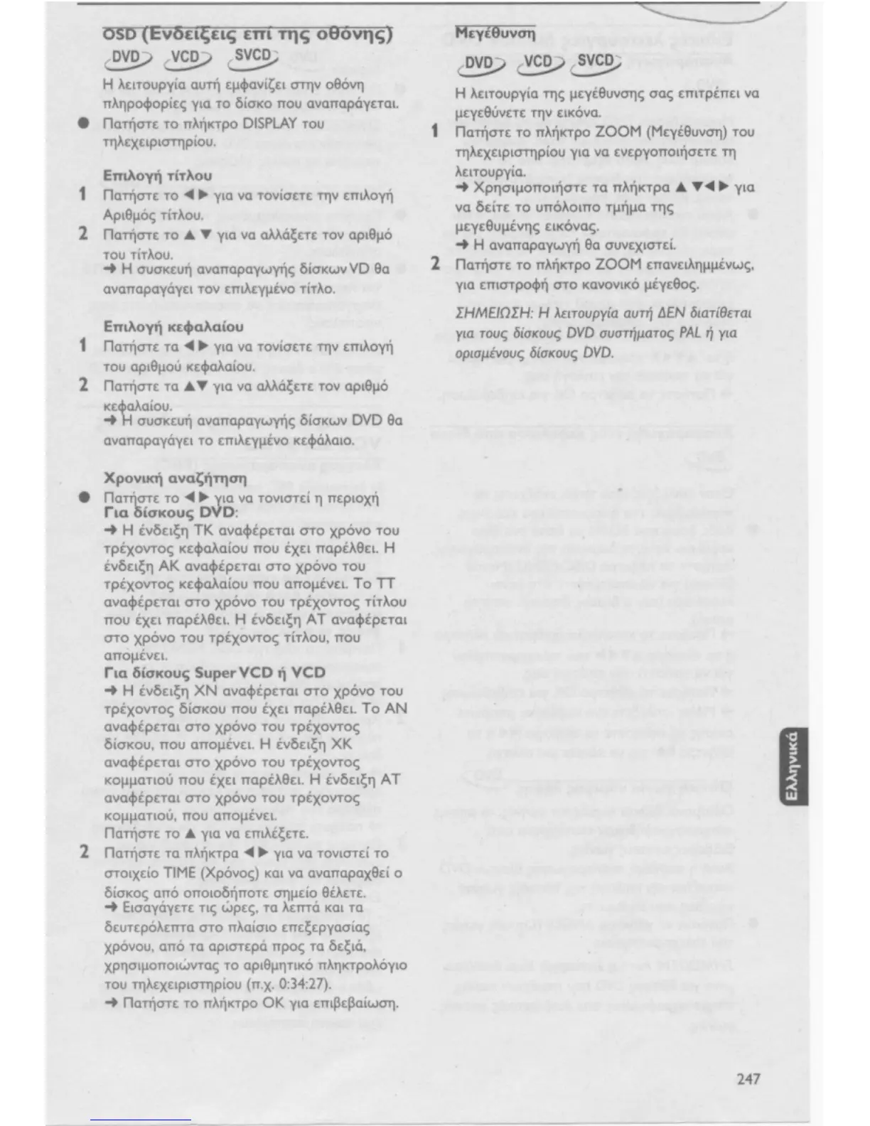 Philips DVD625 - On-Screen Display (OSD); Title and Chapter Selection; Time Search Function; Zoom Function