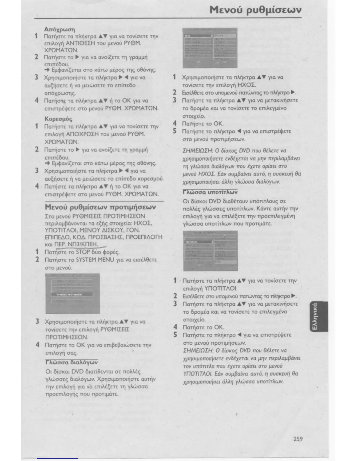 Philips DVD625 - Hue and Saturation Adjustment; Preference Settings Menu; Dialogue and Subtitle Language Preferences