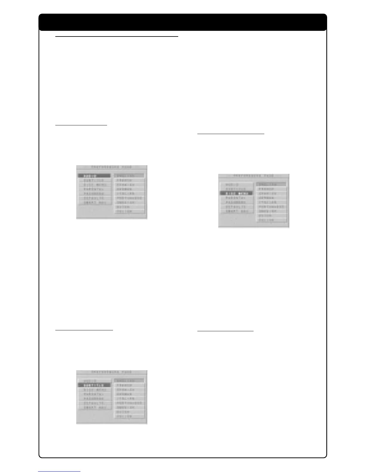 PREFERENCES menu are: AUDIO, SUBTITLE,