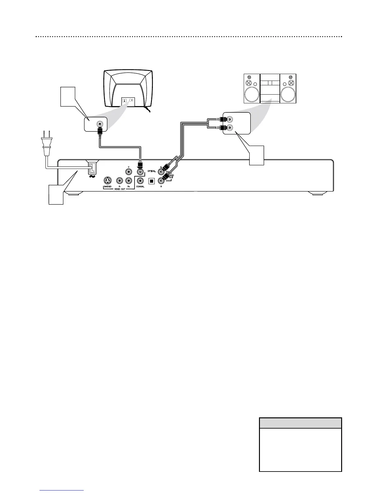 Plug the power cords of the DVD Player, Stereo, and the TV