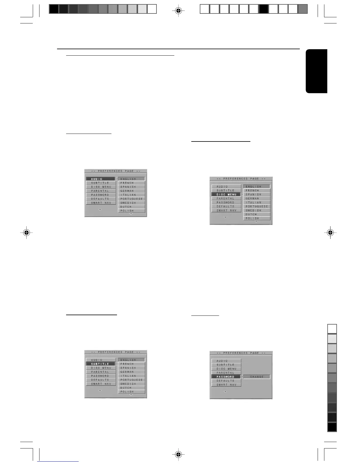 PREFERENCES menu are: AUDIO, SUBTITLE,