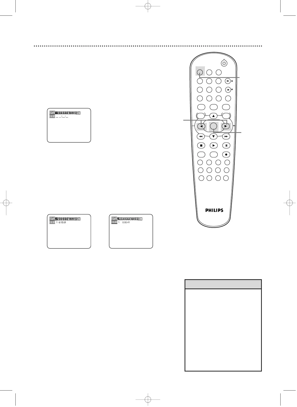 remember, press OK. The Title number and elapsed