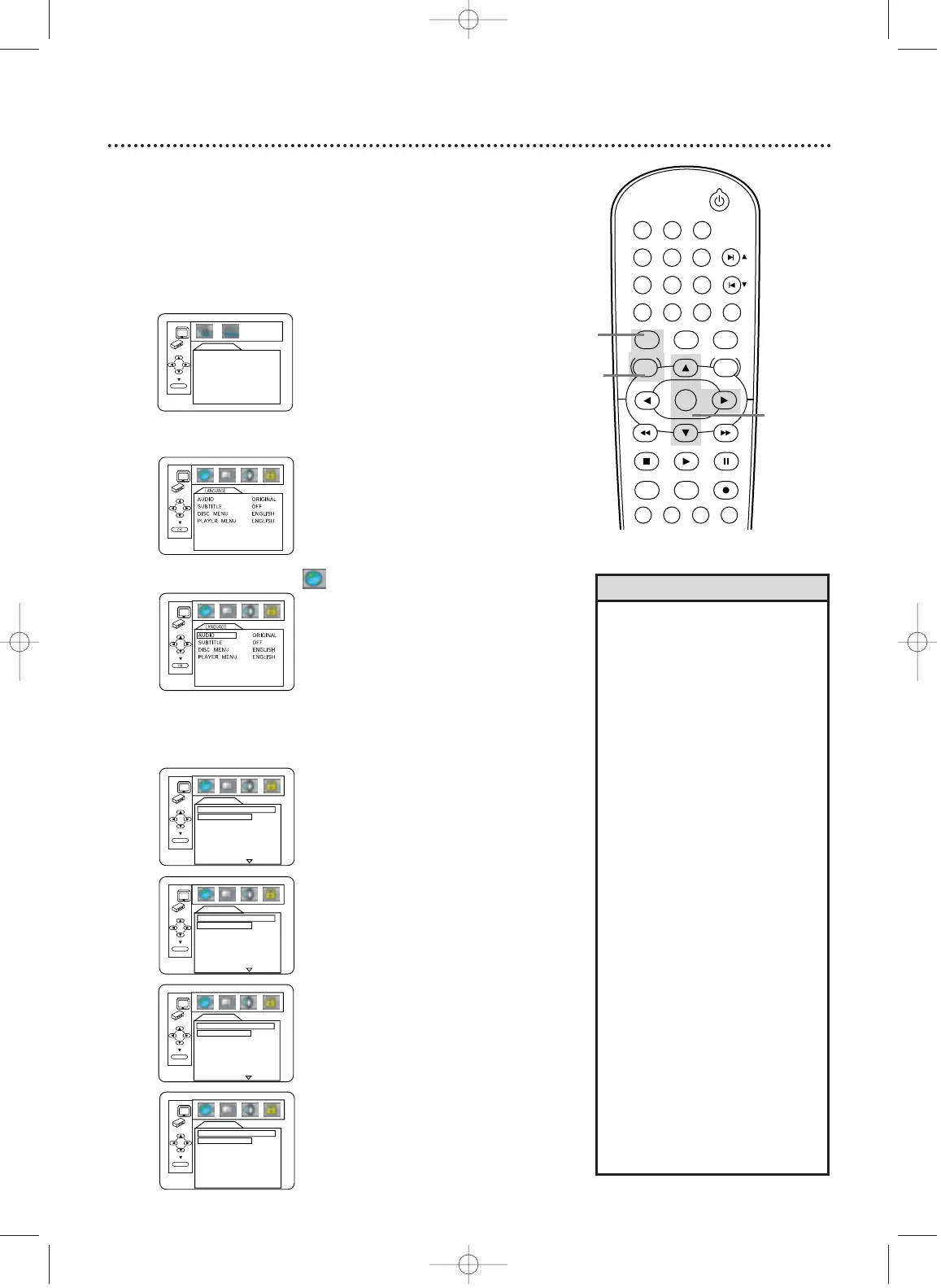 Press oo or pp to select AUDIO, SUBTITLE, DISC